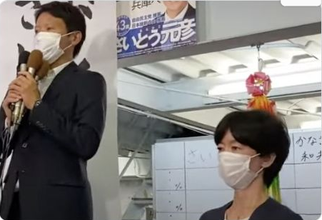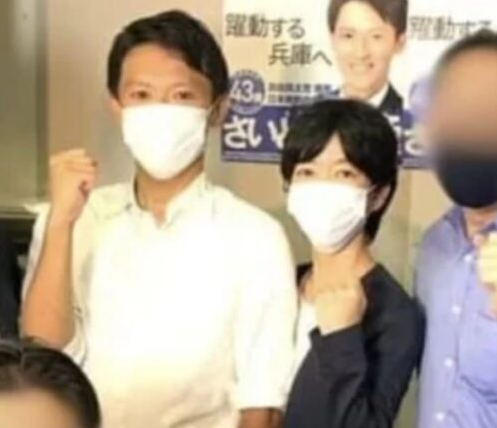 2021年の兵庫県知事選挙の当選報告時に撮影されたとされる、マスク姿で斎藤元彦さんの隣に立つショートカットの女性の写真が唯一、妻ではないかと言われています。