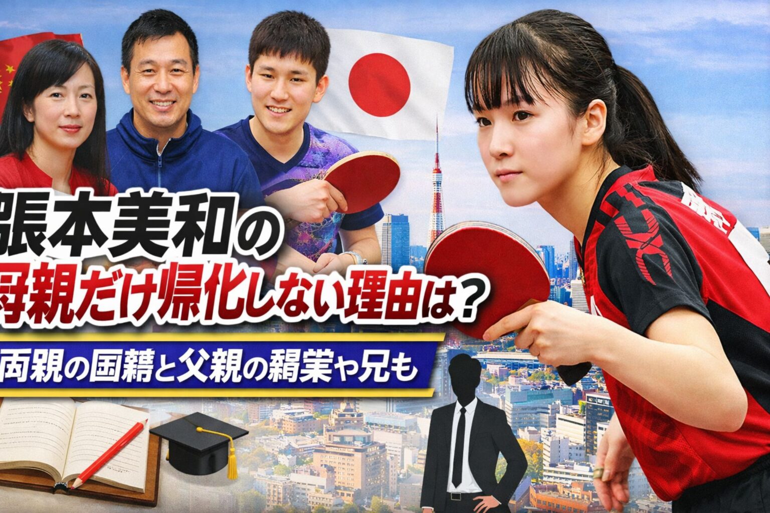張本美和選手の両親は元中国代表選手で、なぜ日本に来たのかということについては、卓球指導や子どもたちの育成を視野に入れた来日が背景にあります。