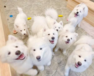 サモエドの群れに囲まれる様子を収めた写真や動画が数千の「いいね」を集め、連鎖的な来店予約の増加を招きました。